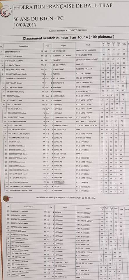 Résultat et quelques photos du 50 ans du BTCN CS du 09/09/2017