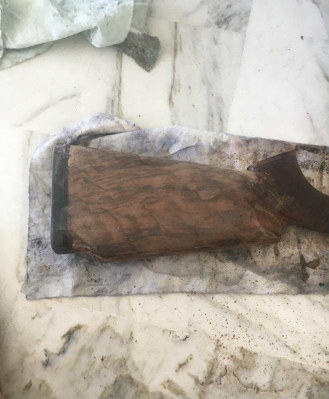 Quitte a rester a la maison .... je m’occupe en decidant de refaire la finition de ma crosse que je trouvais trop foncée ( à mon goût ...)