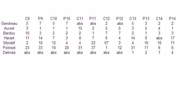 Voir tableau... C9 : Chts de France de Compak 2009