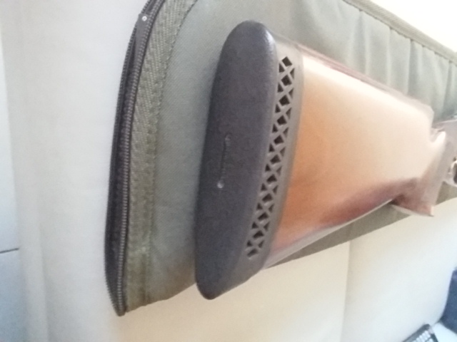 Avec un tournevis de petit diamètre en appuyant sur la partie médiane du sabot de haut en bas tu sentiras 2 trous sous ce revêtement => Ce sont les trous de passage des vis qui fixent le sabot sur la crosse.