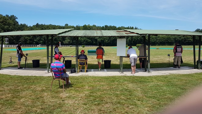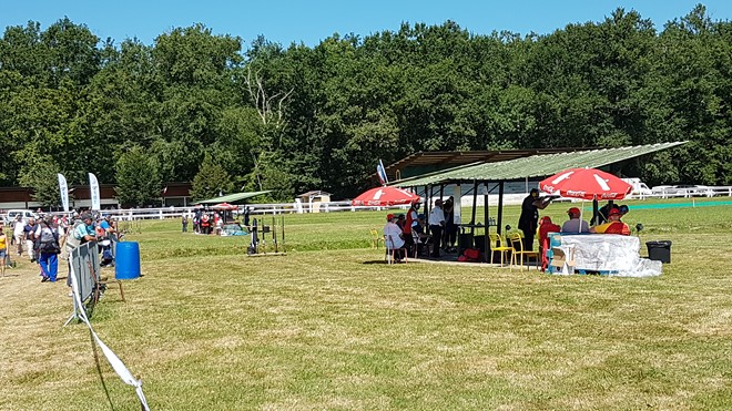 après avoir participé à divers championnats Nationaux ( tir à la cible et pétanque) et pour ne pas finir idiot, je me suis inscrit aux championnats de France DTL avec l'objectif de me faire plaisir et de réaliser ce que je sais faire au niveau club ou ligue, j'ai donc pris la route de Cazaubon avec arme et bagages, visite au stand en arrivant : superbe installation sur l'hippodrome avec les 8 fosses bien réparties, site entouré par une haie de feuillus de belle taille, des emplacements de parking ombragés par de grands arbres.