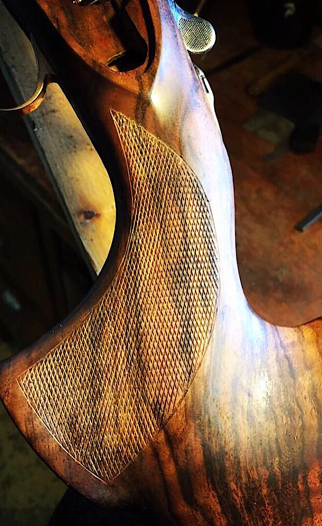 Solution invisible (je ne parle pas de moyens financiers ni temporels) : Après allègement de la crosse pour eviter un ensemble trop lourd, tu fais dessouder les bandes, mettre du poids judicieusement placé entre les canons avec essais de confort pour la repartition et ressouder l'ensemble.