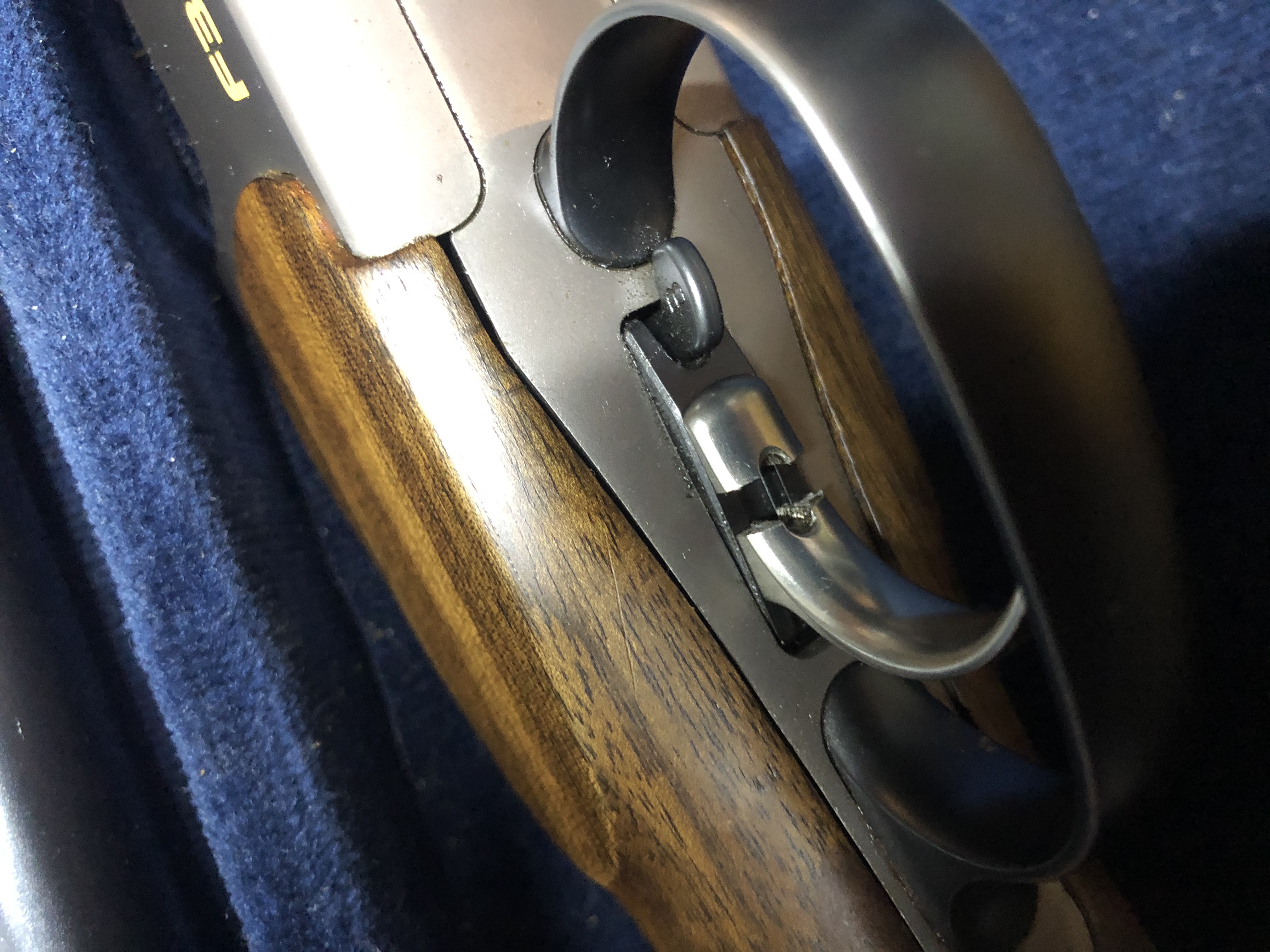 Peut etre qu une detente de browning pourrait se monter en la modifiant un peu....j en suis meme sur !mgreen:!) aplo:) il suffit juste de faire une petite piece dural en U pour récupérer la largeur de la rainure en Te de la browning qui est plus large que ton support de detente et peut etre de repercer le taraudage de la detente browning en faisant un petit lamage pour Noyer ta tete de vis de la blaser et cela pour une poignee de figues (50/70€)!oula:) mais faut le gus qui a 10 doigts et la sa se complique priztete:)