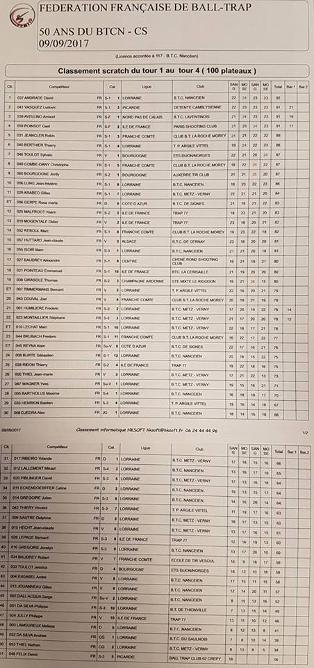Résultat et quelques photos du 50 ans du BTCN CS du 09/09/2017