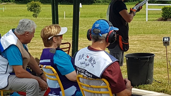quant à la compétition qui a bénéficié de bonnes conditions météo (pluie le jeudi matin, un peu de brouillard matinal, et soleil le reste) , les trajectoires m'ont semblé homogènes, les fosses sont plus basses que celles de notre ligue (c'est comme çà...on fait avec) avec des trajectoires surement réglementaires (et apparemment vérifiées tous les matins) ...pas un problème pour moi et pour la plupart mais il est vite fait de se planter et d'accuser ( ou de se chercher une excuse) le matériel, le vent, les trajectoires ...et pourquoi pas l'arbitre .Bonne ambiance entre les tireurs de ma planche (avec un merci à Jean-Michel qui a signalé à l'arbitre un plateau que j'avais cassé et qu'il n'avait pas vu -j'en étais pas sur non plus- ....mais çà n'aurait pas changé la face du monde).quelques incidents de fosse rapidement réglés par super DTL ....en somme une bonne semaine....et ma 15e place en super vétéran qui me satisfait pleinement (même si on peut toujours faire mieux) avec un score qui me convient aussi....pour ma première ....et surement unique prestation à ce niveau